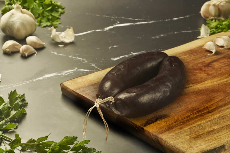 Il sanguinaccio è un dolce tipico sardo che presentiamo nella caratteristica forma di un salame, pronto per essere affettato e gustato in tutta la sua bontà.