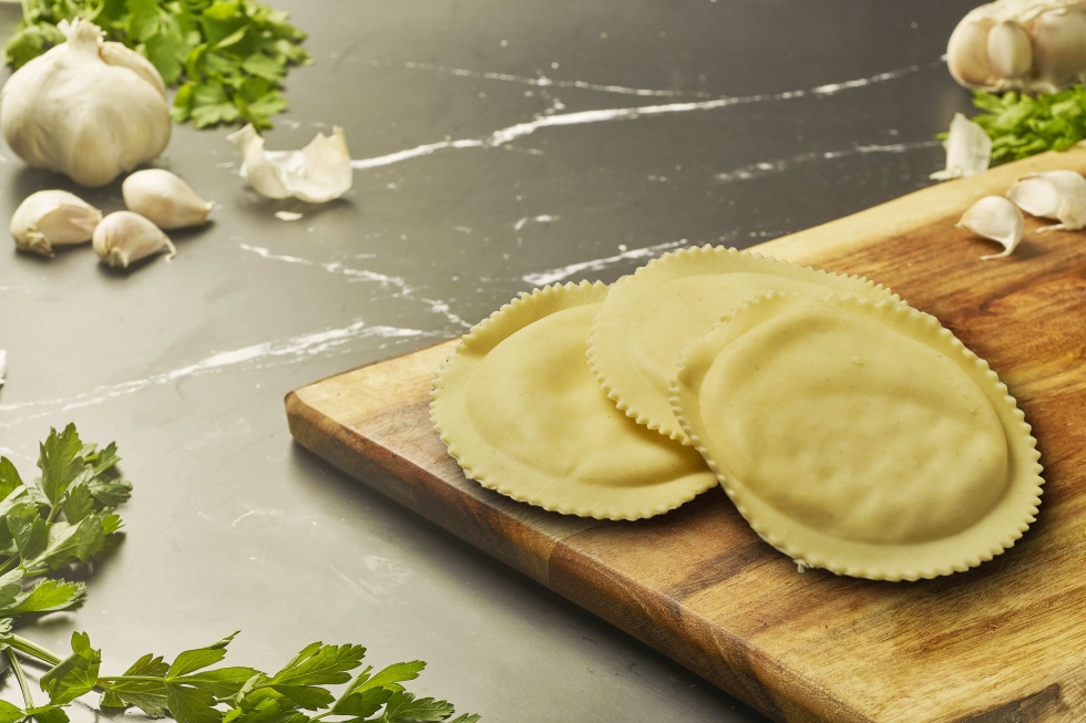 Tirata a mano fino a ottenere uno strato sottile e delicato, la pasta esterna si distingue per la sua consistenza leggermente ruvida e porosa che avvolge un cuore di pecorino fresco,