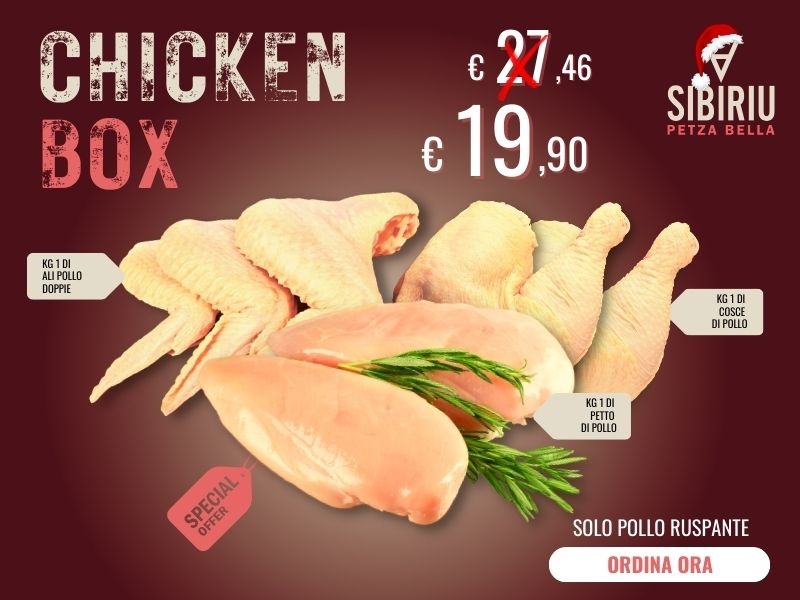 Porta sulla tua tavola la freschezza e la bontà della carne di pollo con la nostra esclusiva "Chicken Box". Un'opzione conveniente e deliziosa per soddisfare i palati di tutta la tua famiglia, questa box offre una selezione equilibrata di parti di pollo di alta qualità.